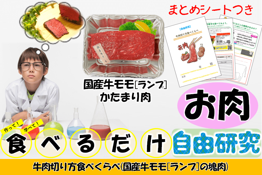 商品詳細:国産牛ランプブロック500g、自由研究まとめシート
