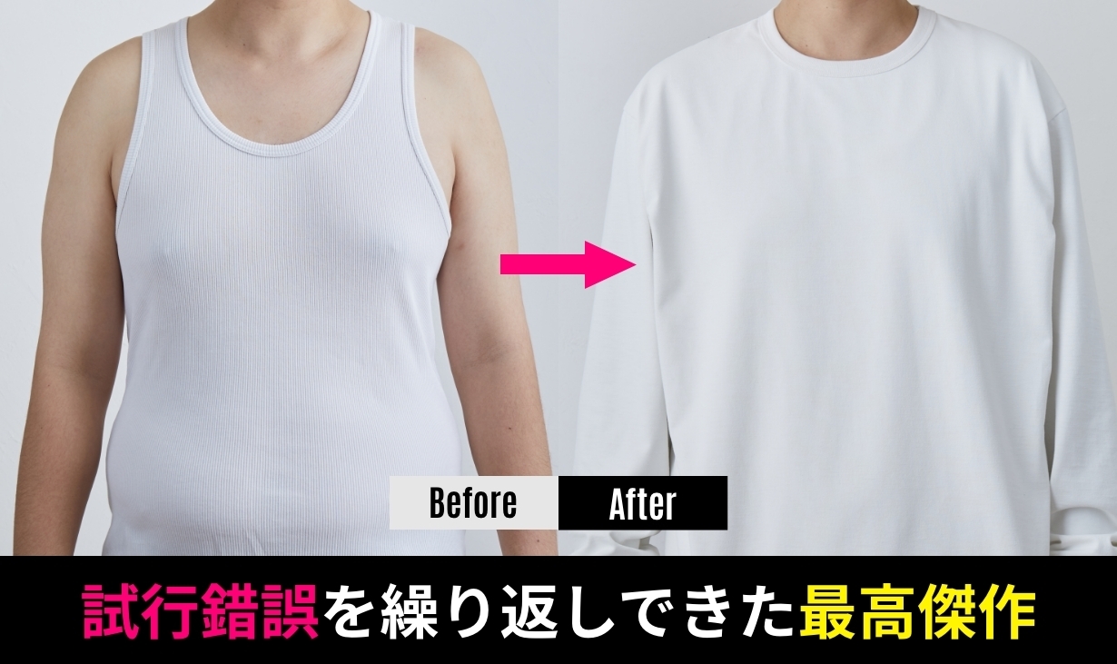 その後、購入していただいた方から「夏場は毎日白Tシャツ1枚で過ごしました」や「自信を持って白Tシャツ1枚で出かけられました」などのお声をいただいています。