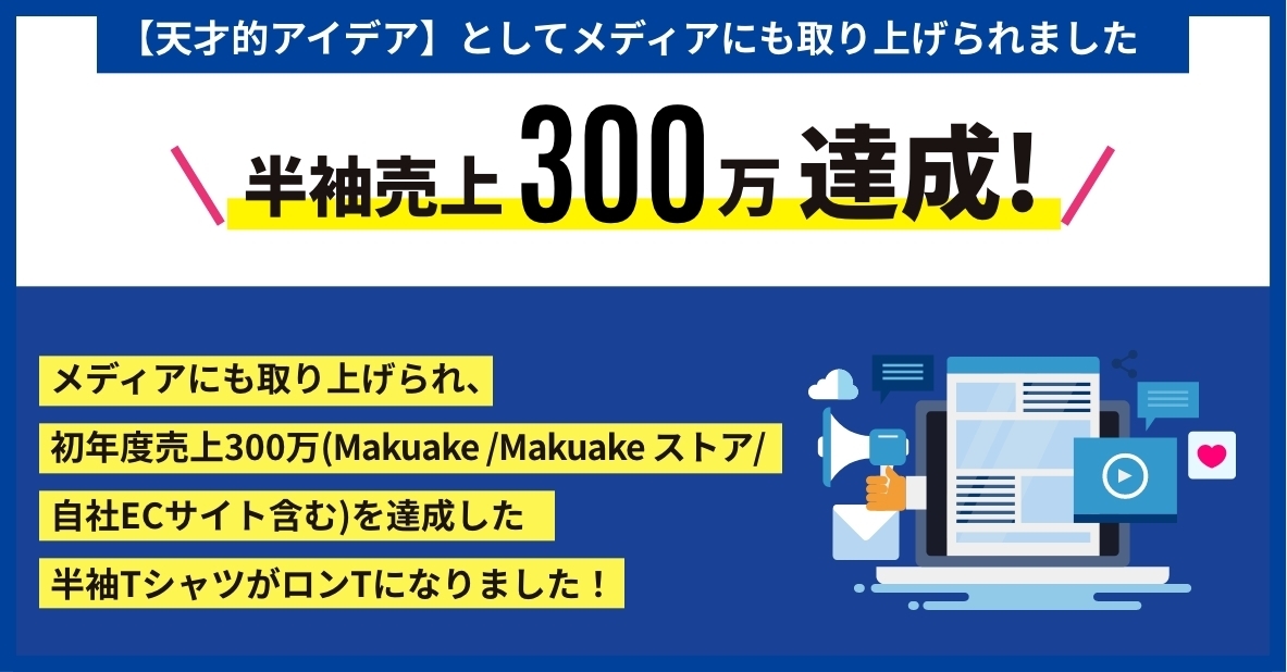 2022年4月に発表したTシャツは「Makuake」で目標金額に対して310%を達成し、わずか半年で売上300万を達成しました。