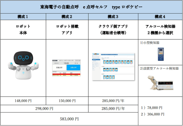 アルコール検知システム、自動点呼システム、運行管理システムを開発・販売する東海電子株式会社(本社:静岡県富士市 代表取締役 杉本 哲也)は、この度、国土交通省の認定を受けた自動点呼機器『e点呼セルフ typeロボケビー』の販売を2023年6月23日に開始しましたことをお知らせ致します。