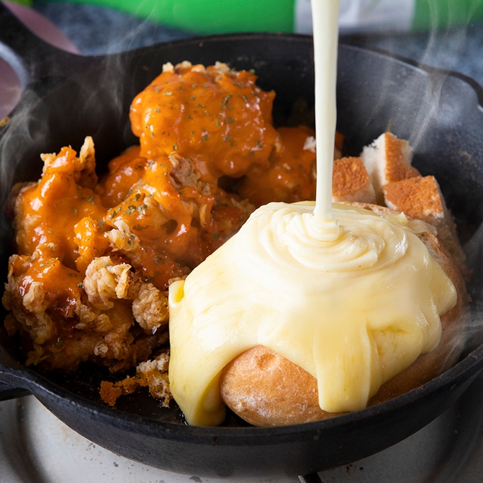 揚げたての、ジューシーでザクザク食感のチキンは、流行りの甘辛ヤンニョムチキンをはじめ、全5種類のフレーバーをご用意。他にも、韓国チキンと合わせて伸びるチーズが魅力的なパネチキン、UFOチキンなどもご用意しております。