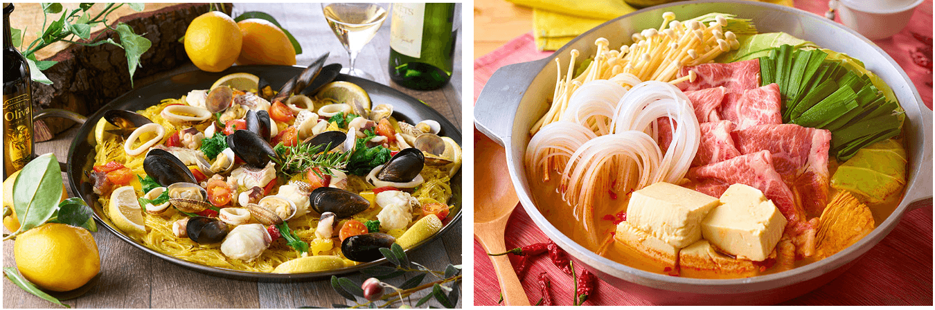 右:冬と言えば、やっぱりお鍋。キムチ鍋や寄せ鍋など4種の出汁をご用意しています。