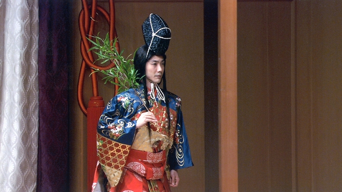 宮廷絵師・金岡を萬斎が勤める『金岡 大納言(かなおか だいなごん)』は江戸前狂言屈指の大曲。宮中で一目惚れした上臈への狂おしい程の恋慕を、金岡が特殊なビブラート(ユリ)を含む謡と舞で抒情的に表現する前半から一転、後半では妻と現実に向き合います。今回は「大納言」の小書(特殊演出)により、一段と宮廷画家らしい装束での上演となります。ご期待ください!