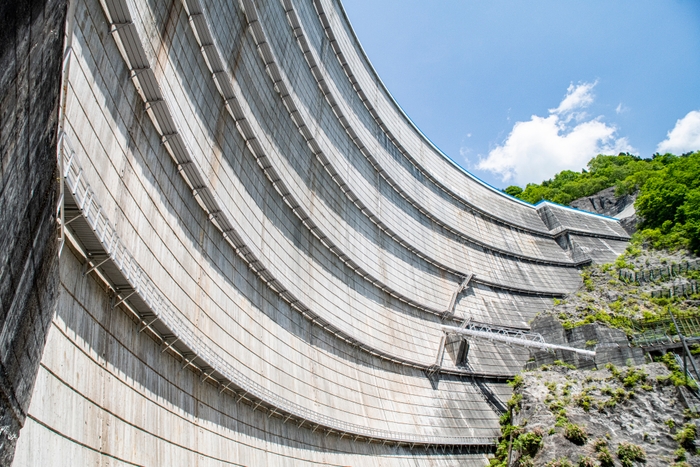 そそり立つ堤体を真下から仰ぎ見る 貴重な体験もできます。