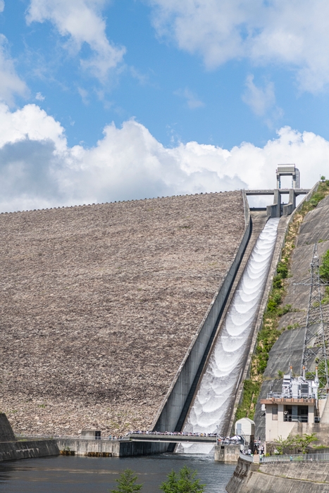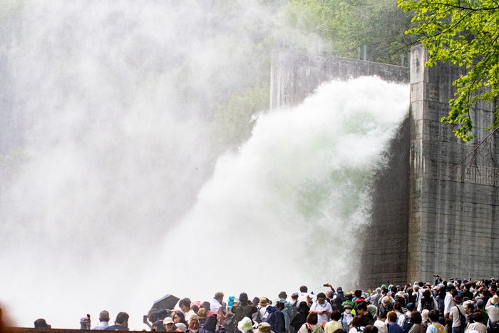 「関東の⽔がめ」とも呼ばれる3つのダム(⽮⽊沢ダム・奈良俣ダム・藤原ダム)では、年に⼀度、洪⽔期を迎える前にダムの放流設備が安全に作動するか確認するため「点検放流」が⾏われます。2018年からスタートしたイベントで、今回で5回⽬を迎えます。