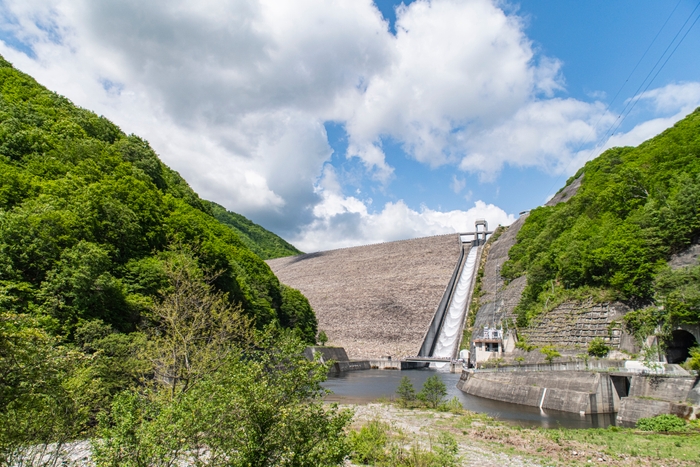 ダムの⼥王と呼ばれている圧巻のロックフィルダム 「奈良俣ダム」。