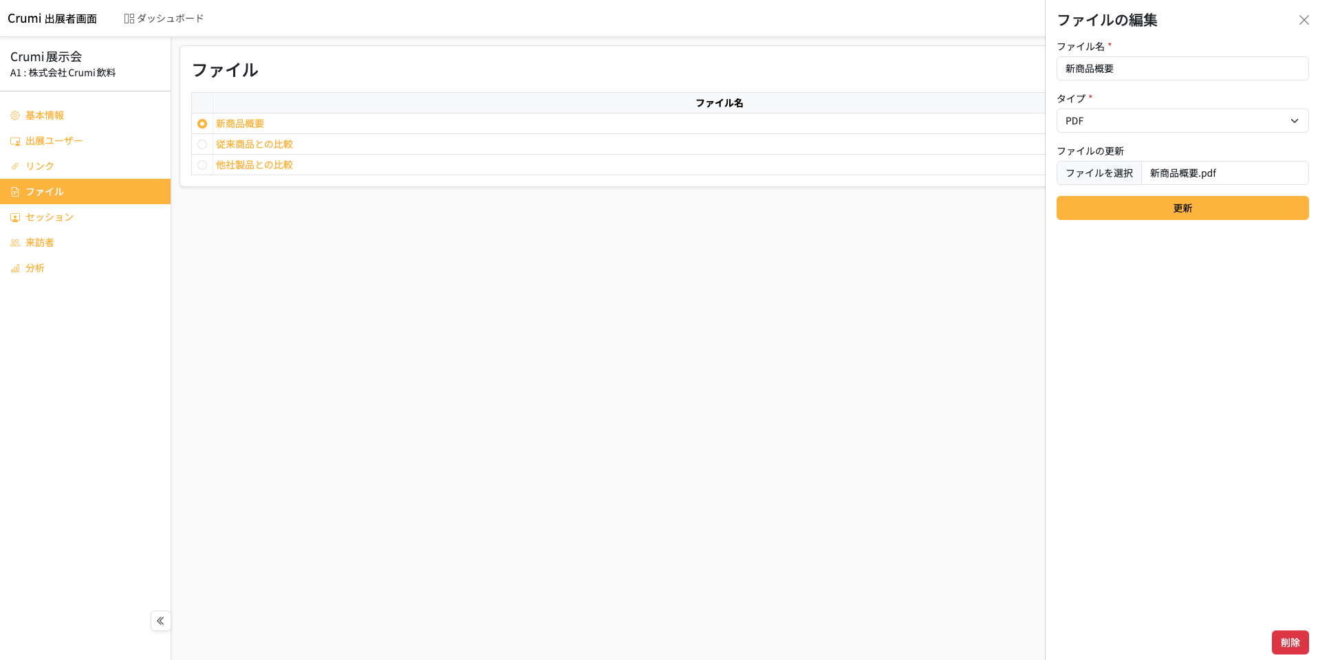ブースを訪れた来場者に共有する資料や関連リンクを登録できます。来場者のwebチケットを読み取ることで登録した資料等の共有が完了するため、資料配布のペーパーレス化が実現し、準備や管理の手間を大幅に削減できます。