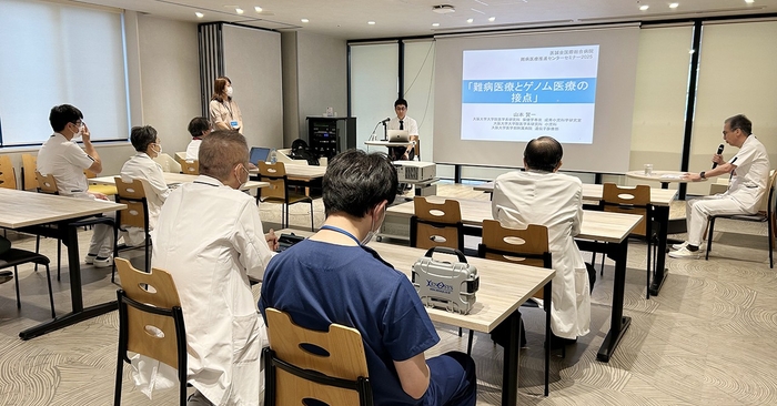 医療法人医誠会(本社:大阪市北区、代表者:谷 幸治)は、2025年8月29日(金)に、難病医療推進センター第1回セミナーを大阪で開催しました。テーマは難病医療とゲノム医療の接点。大阪大学大学院 医学系研究科 保健学専攻 成育小児科学 准教授 山本 賢一 先生を講師に迎え、院内外の医師・看護師・薬剤師・リハビリスタッフ計15名が参加しました。進行は医誠会国際総合病院 難病医療推進センター センター長 大薗 恵一が務めました。(医誠会国際総合病院 難病医療推進センター、NPO法人未来プロセス、一般財団法人ホロニクス医学健康振興財団 共催)