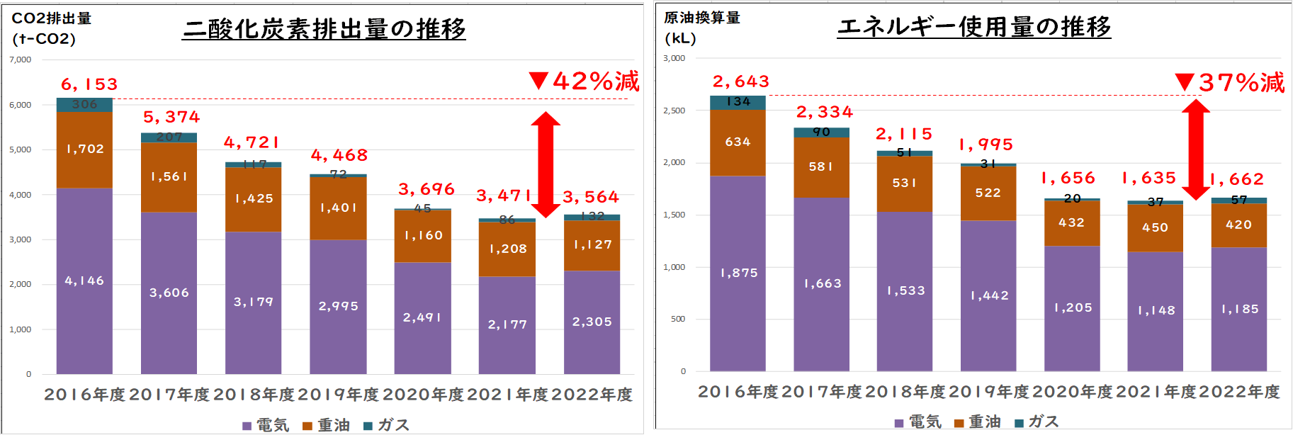 ・CO2排出量42%削減、エネルギー使用量37%削減