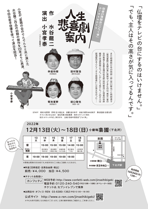 役者の落語会「ごらく亭」『人生悲喜劇案内』が2022年12月13日 (火) ~2022年12月18日 (日)に小劇場 楽園(東京都世田谷区北沢2-10-18藤和下北沢ハイタウンB棟地下1F)にて上演されます。