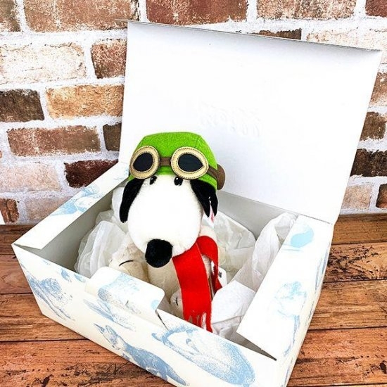フライング・エースに扮したスヌーピーデザインです。ふわふわなぬいぐるみというよりは、少しずっしりとした重厚な感じ!高級感あるスヌーピーに仕上がっています。