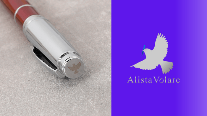 このボールペンには、アリマートが大切にする哲学と、ユーザーの未来が交差する2つのロゴが刻まれています。天冠に配置されたブランドロゴ「アリスタヴォラーレ」は、イタリアの国鳥であるイタリアスズメがペンを加えて飛び立つ姿を描いており、未来へ向かって挑戦し続けるブランドの姿勢を象徴しています。そして、ボールペン中央に印字された「クレシータ」のロゴは、イタリア語で「成長」を意味するペンそのものの名前です。これら2つのロゴが、挑戦と成長の物語を紡ぐ「品格ある相棒」としての証となります。