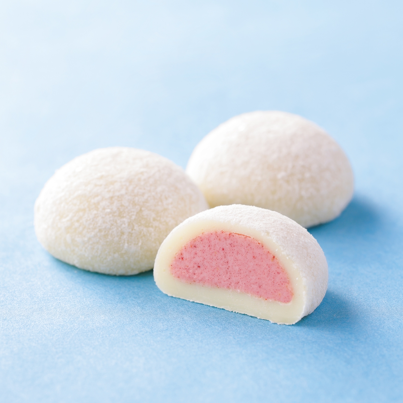 モチモチのホワイトチョコ餅に、甘酸っぱい苺チョコがたっぷり。