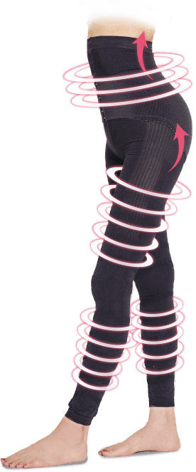 ハイウエストのレギンスでお腹周りはコルセットで、脚箇所には25にも及ぶ着圧ポイントでグッと引き締めしっかりサポートしてくれます。お腹と足を引き締めることでお尻をグッと上に持ち上がるため、脚が長くなったような印象をもたらし、誰でも簡単に「細くて長い美脚」を目指すことができます。