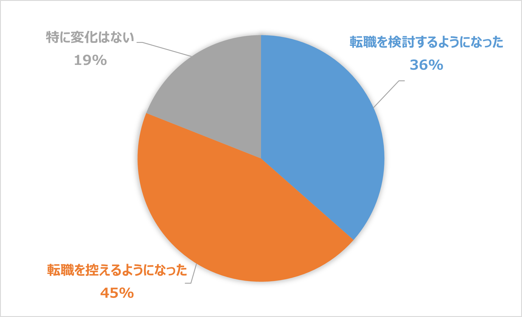 また、働くスタッフについては、コロナで転職活動になんらかの影響を与えたという結果になりました。働き方について話し合ったり、研修を行うなどして、フォローするとよいでしょう。