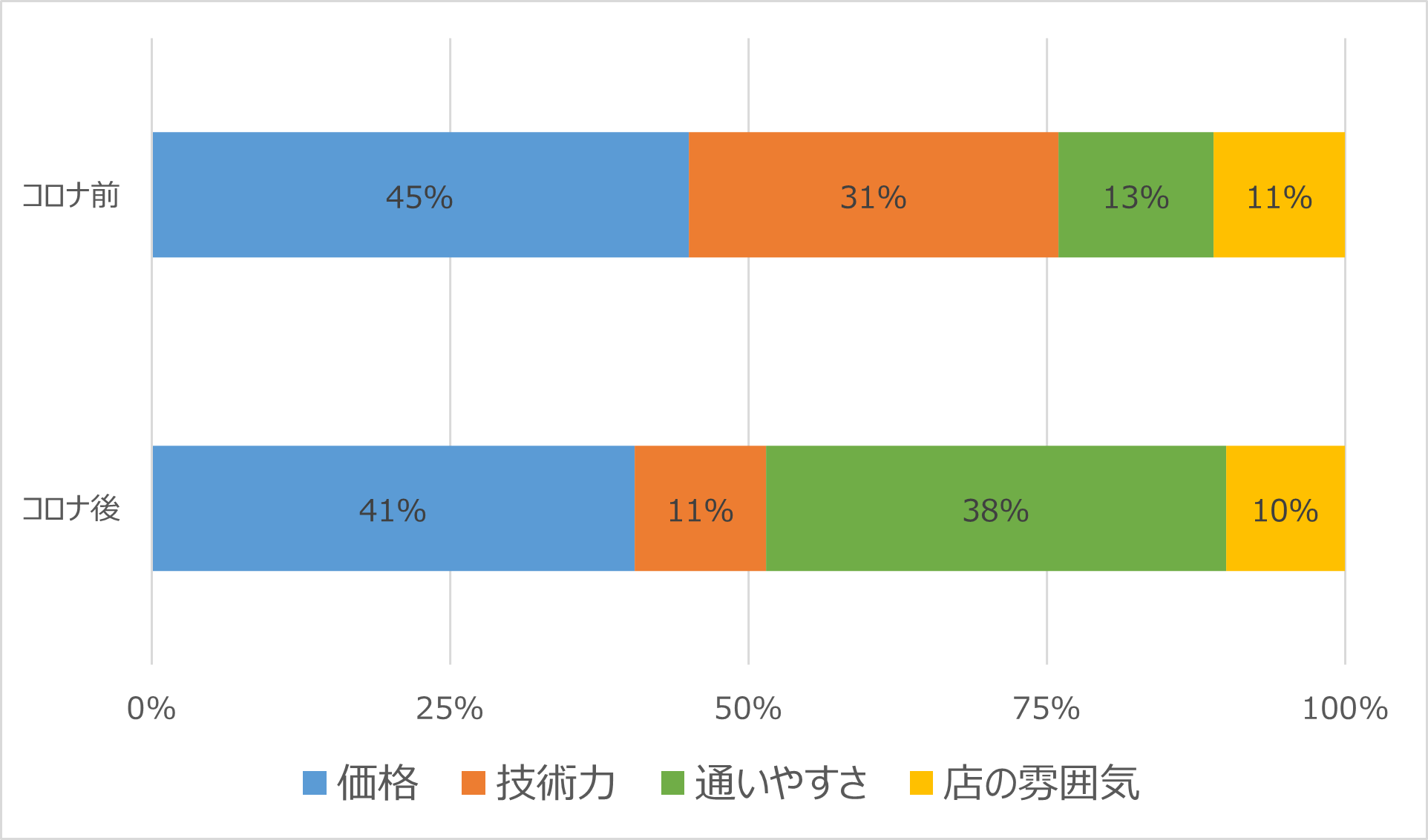 それでは、コロナ前後で、お客様の美容室の選び方がどう変わったのかを見てみましょう。