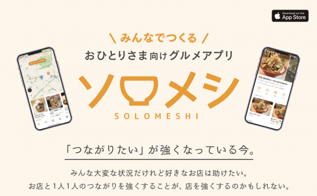 おひとりさまグルメアプリ「ソロメシ」は、「ひとりの時間を豊かにする」ことをミッションに、ひとり外食の魅力発信や、お店探しアプリの提供をしています。
