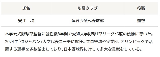 大学スポーツを支援することで、大学スポーツの振興に寄与した個人を表彰する。