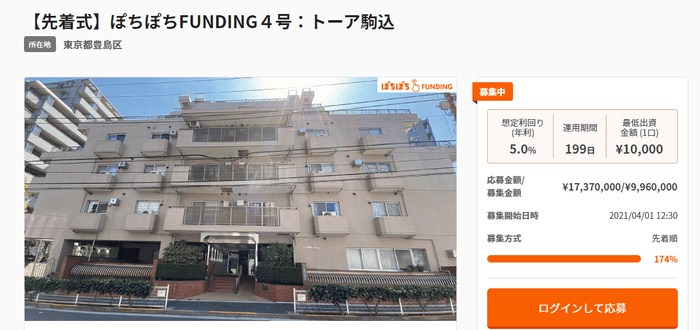 【20秒で完売!】不動産投資型クラウドファンディング「ぽちぽちFUNDING」4号募集達成