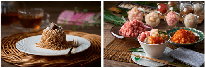 右:朝食には「自分で作る海鮮のっけ丼」が登場。まぐろやサーモン、いくらなど具材もワンランクアップして朝から贅沢な気分を満喫してみませんか?