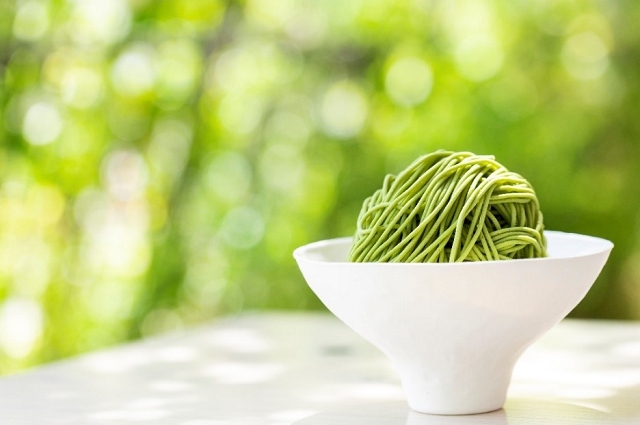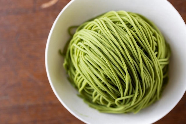 香りが良く、甘みのバランスが良い足柄茶粉末と日本一の生産量である茨木県産の栗を使用し足柄茶マロンクリームを作りモンブランに仕立てました。モンブランの中には足柄茶と生クリームを使用した滑らかな食感の自家製のババロア、金太郎牛乳を使用したミルク感じる金太郎牛乳ソフトクリーム、スポンジを忍ばせております、冷たいソフトクリームや柔らかいババロアと幾つもの味を楽しめ飽きることなく堪能出来ます。特注の専用の機械にてオーダー毎に絞り出したモンブランは1mmの細さ、繊細な口どけと栗とお茶の風味をお楽しみいただけます。
