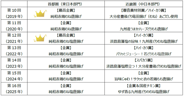 ▼ライフコーポレーションのからあげグランプリ🄬過去受賞歴