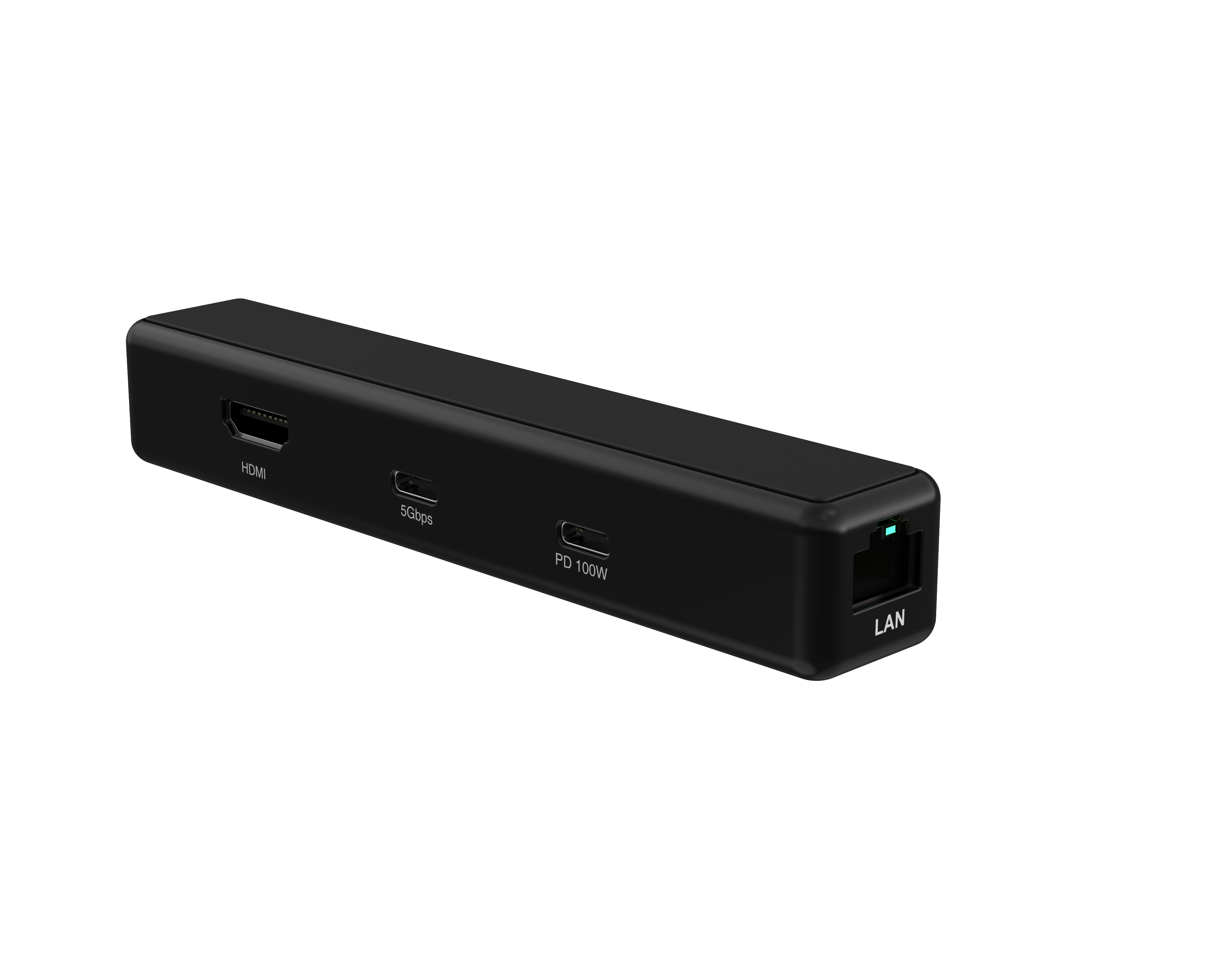 HDMI×1(4K@60Hz)、USB 3.0 Type-A×2 (5Gbps)、LAN×1 (RJ45、10/100/1000Mbps) 、USB Type-C(PD)×1、USB Type-C(DATA 5Gbps)×1の計6ポート搭載のUSB Type-C接続 ドッキングハブです。またMACアドレス パススルーにも対応しております。