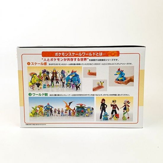 それがこちら。ポケモンスケールワールド。今はどうやら第3弾のようです。特徴は、ポケモンを1/20で立体化したこと。指先でつまむ小さいサイズから、大きなサイズのものまで、ポケモンの世界を再現できるサイズバランスで揃えることができるのが特徴。ぬいぐるみって例えば、Sサイズだとどれもだいたい15cmとか、現実が同じサイズ感になっていくのですが、こちらはサイズ比がしっかりしているので、並べた時に映えます。