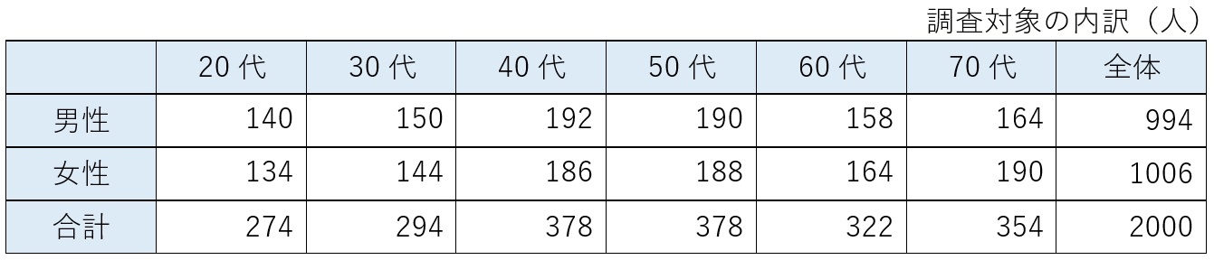 調査対象:全国20代~70代の男女2,000名