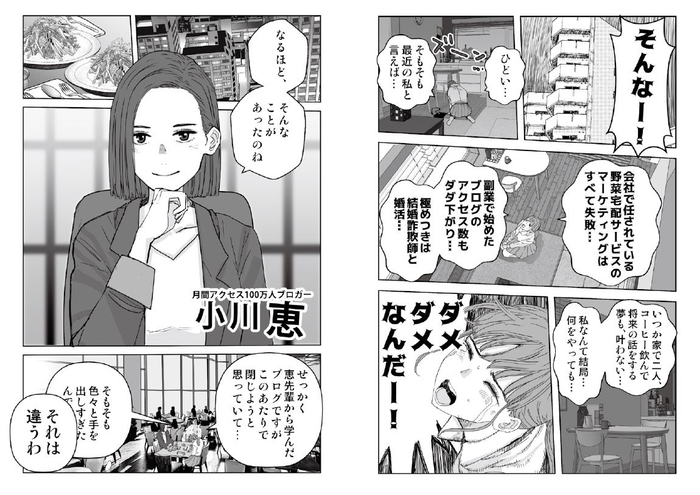 物語は、ベンチャー企業でマーケティングを担当しながら、副業でブログを運営する女性が主人公。