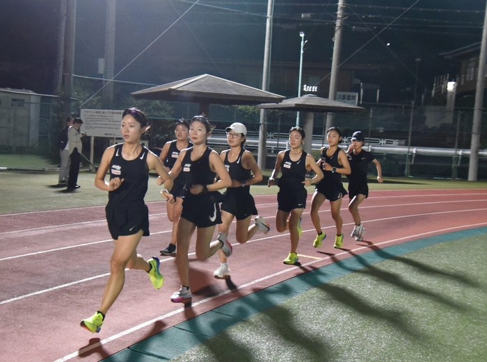 宮城県仙台市で10月27日(日)に行われる「第42回全日本大学女子駅伝対校選手権大会」(杜の都駅伝)を前に、本学女子駅伝部の合同取材会が10月16日、天白キャンパス第2グラウンドで開催されました。米田勝朗監督(法学部教授)や選手たちがメディア各社の記者に現在のチームの状況や史上初の8連覇に向けた意気込みを語りました。