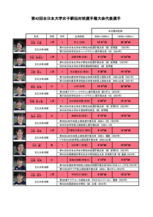 チームの現状について米田監督は「夏までの状態では立命館大学の方が上だったが、秋の記録ではかなりいい状態になってきた」と手応えを語り、レースの見通しを「立命館大学、大東文化大学、日本体育大学と競り合う展開になる」と予想。前人未到の8連覇に向けて「大事なことは学生たちが勝ちたいかどうか、自分たちのチームとしてやるべきことをやったかどうかが大事」と選手たちの奮起を促しました。