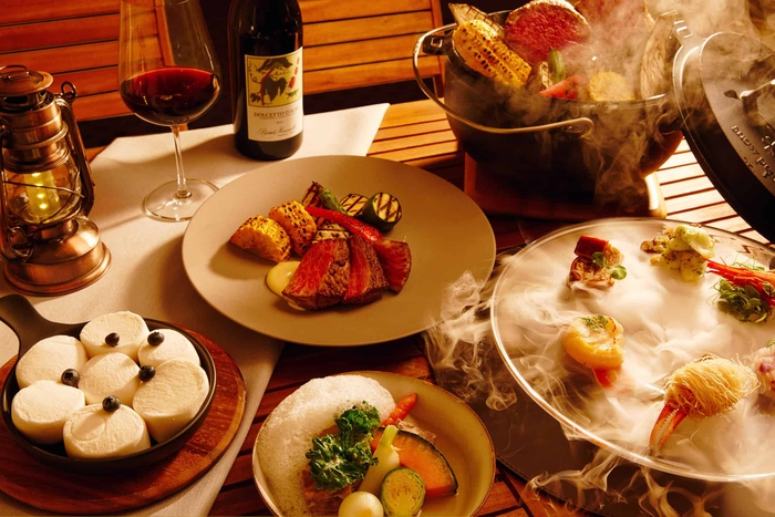 北海道最大級の滞在型リゾート「星野リゾート リゾナーレトマム」は、2022年7月20日~8月31日の期間に、天空の絶景を望むテラスを家族で貸し切りできる「雲海テラスキャンプ」を実施します。これは、貸し切りの雲海テラスでキャンプと雲海観賞を楽しめるプランです。2年目となる今年は、「雲海キャンプディナー」を提供。このディナーでは、ダッチオーブンから出るスモークやスキレットに乗せたマシュマロで、雲海を表現しています。夜は満天の星の下で食事を楽しみ、早朝は誰よりも早く雲海を眺められます。