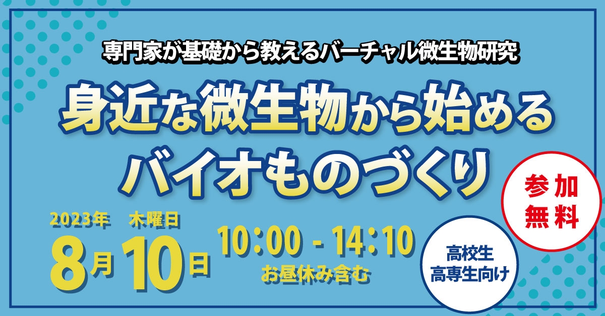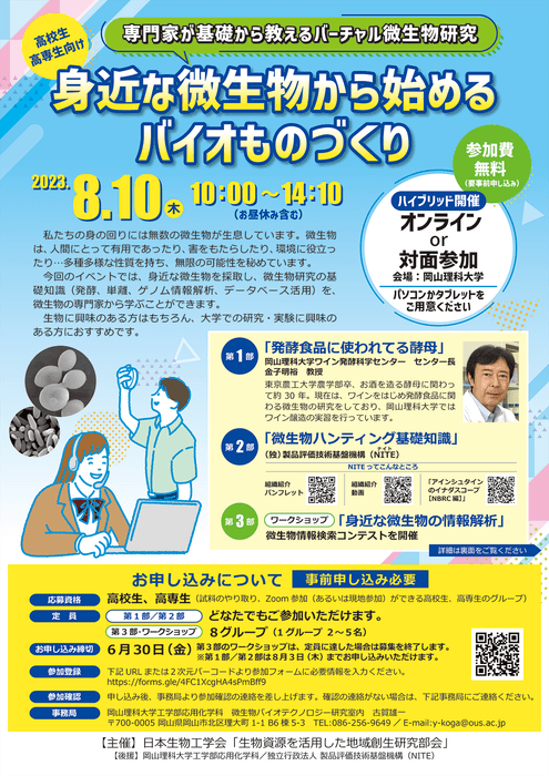 【岡山理科大学】専門家が基礎から教えるバーチャル微生物研究「身近な微生物から始めるバイオものづくり」|日時:2023年8月10日(木)10:00~14:10 開催!参加無料