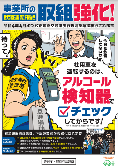 2022年7月14日、警察庁はアルコール検知器の義務化を延期にするとのパブリックコメントを公表しました。