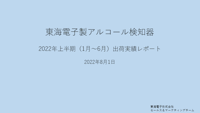 飲酒運転防止のためのアルコール検知器及びIT点呼システムを開発・販売する東海電子株式会社(本社:静岡県富士市 代表取締役 杉本 哲也)は、この度、今年2022年度上半期のアルコール検知器出荷に関するレポートを公表いたします。