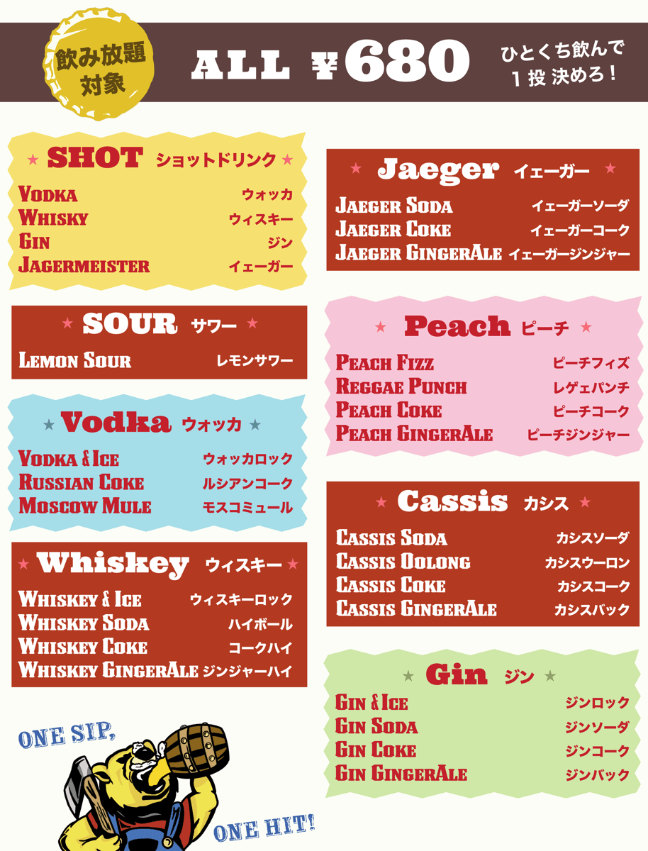 ・1ドリンクBULLチャレンジ!300円+1ドリンク