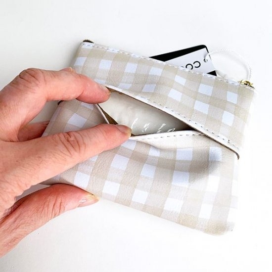 ティッシュの取り出し面がチェックになっていて、オシャレですよね。表面は小物入れになっていて、上部のファスナーで開閉できます。