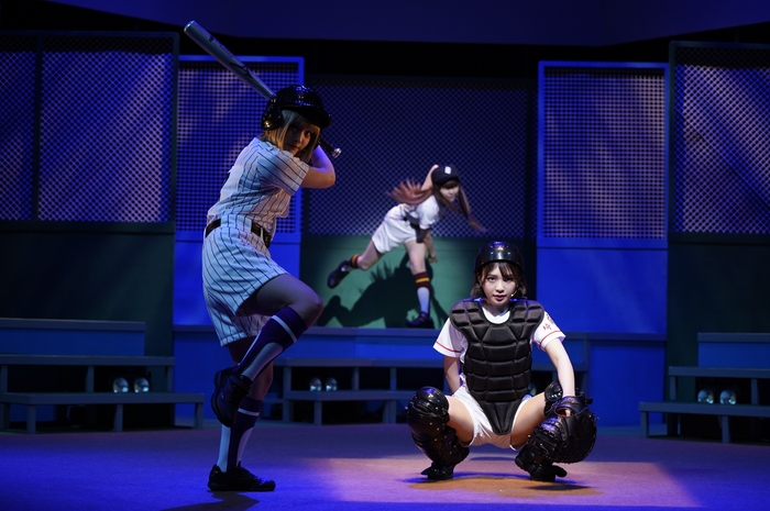 一方、小澤は「私は右利きですが、希ちゃんは左投げ・左利きなので、毎日、左手で素振りをして練習をしてきたので、スイングのフォームも見てもらいたいです。それから、今回、博多弁も話しているので、そこも聞いてもらえたら」と言い、間島は「怜は、部活が停部中も整備をして守りきってきた優しい子なので、その優しさや安心感を出して、この舞台で大黒柱になれるよう努力してきたので、そこは見てほしいです。それから、理沙とのプールサイドのシーンは、原作ファンの皆さんにも満足してもらえるように努力していますので、そこも注目してください」と話した。そして、岡村は「アニメ同様にツインテールが揺れるところも気に入っていますが、普段の学校で過ごしている可愛らしい芳乃ちゃんと、試合中に守備シフトとかを指示する野球に全力な芳乃ちゃんのギャップも見てもらいたいです」と笑顔を見せた。