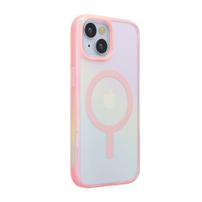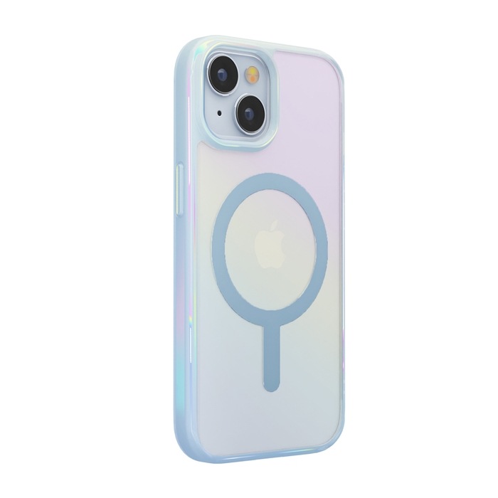 各種MagSafeアクセサリーに対応したiPhone 15/14/13用 ハイブリッドケースです。マグネットリング搭載でMagSafeアクセサリーをピタッと簡単装着。耐久性のあるポリカーボネイトとしなやかなTPUを組み合わせたハイブリッド設計で端末本体をしっかり保護します。ケース背面・側面にも色鮮やかなオーロラ加工が施されたデザインです。ショルダーストラップの取り付けに便利な「ストラップホルダー」と、ちょっとしたイメージチェンジが可能なマット仕様の「背面フィルム」付属。