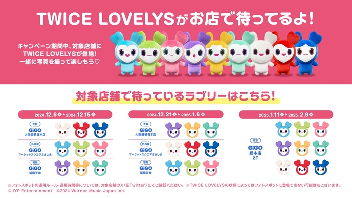 TWICE LOVELYS×GiGOキャンペーン 2024 WINTER 開催のお知らせ 開催期間:2024年12月6日(金)~2025年2月9日(日)