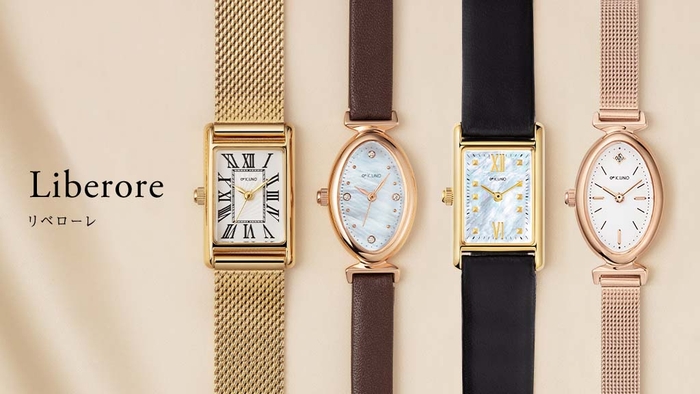 Libero(自由)+ ore(時間)を掛け合わせて命名。“大切な想いに心めぐらせる、自由でゆとりあるひと時を”をコンセプトに、文字盤やベルトを簡単に楽しくセレクトできるクォーツウォッチです。