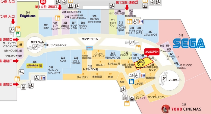 3階、ゲームセンターとTOHOシネマのスグ側!