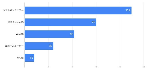 その次にドコモhome 5G・WiMAXが高い使用率を誇っており、3大キャリア回線(ソフトバンク・ドコモ・au)を使用しているホームルーターが人気の傾向にありました。
