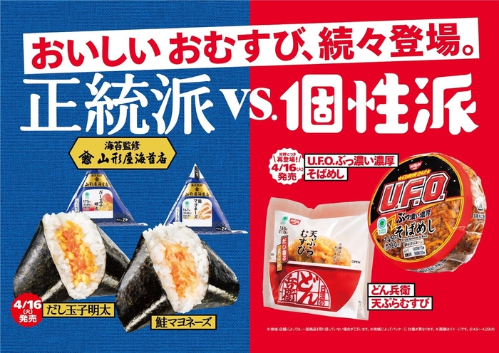 正統派「山形屋海苔店海苔監修 手巻だし玉子明太」、個性派「U.F.O.ぶっ濃い濃厚そばめし」の2商品を、4月16日(火)より全国のファミリーマート約16,300店にて発売いたします。