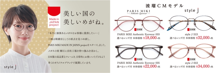 日本および地域への利益の還元を掲げ、商品のメガネフレームは「は「MADE IN JAPAN」にこだわり、エシカル消費を提唱いたします。近年のアジア産商品に押されながらも、高い技術力と品質を維持し続けている「日本のメガネ」を応援すべく、メガネの一大産地福井県鯖江市の企業・工場と連携し、オリジナル商品「style J」などを開発しています。店内の商品も日本製にこだわり、その高い品質の発信地となるべく、豊富に取り揃えております。
