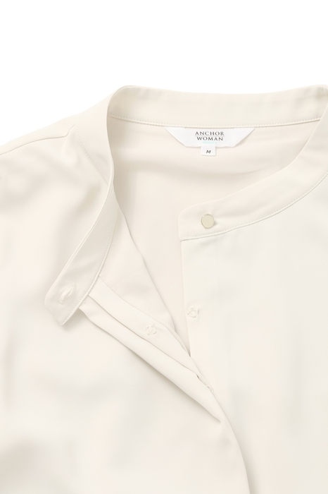 今回のブラウスは、セレモニーやイベントが増える春のシーズンに向けて、華やかさを演出する胸元のフリルタイが特徴です。フリルタイはインスタライブの中で要望のあった簡単に着脱ができる2WAY仕様で、ビジネスシーンでも幅広いコーディネートが可能。また、取り外すとメタルボタンがアクセントになった前開きデザインで、脱ぎ着も楽々です。カラー展開もフォロワーの声を反映し、どんなスーツにも合わせやすいホワイト、柔らかで優しい色味のライトグレージュ、爽やかな大人のグレーサックスの3色を用意しました。
