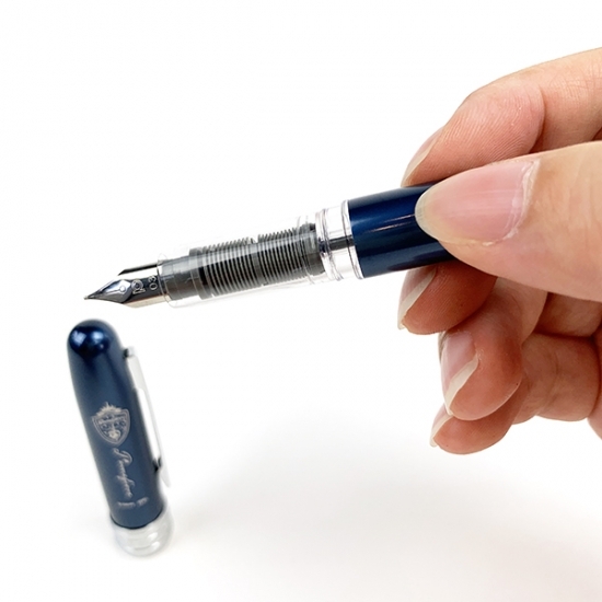 「この万年筆はインクカートリッジで繰り返し使用可能!カートリッジを差し込んだままでもインクが固まらない”スリップシール機構”搭載で魔法の勉強はもちろん、普段使いにもおすすめの一品だよ。」