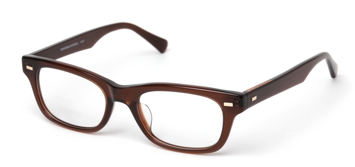 ビンテージフレームでよく見られる鍵穴の形状のキーホールブリッジが特徴的なボストンシェイプのセルフレーム。程良いボリューム感で柔らかな表情に仕上げてくれる秀逸なデザインです。