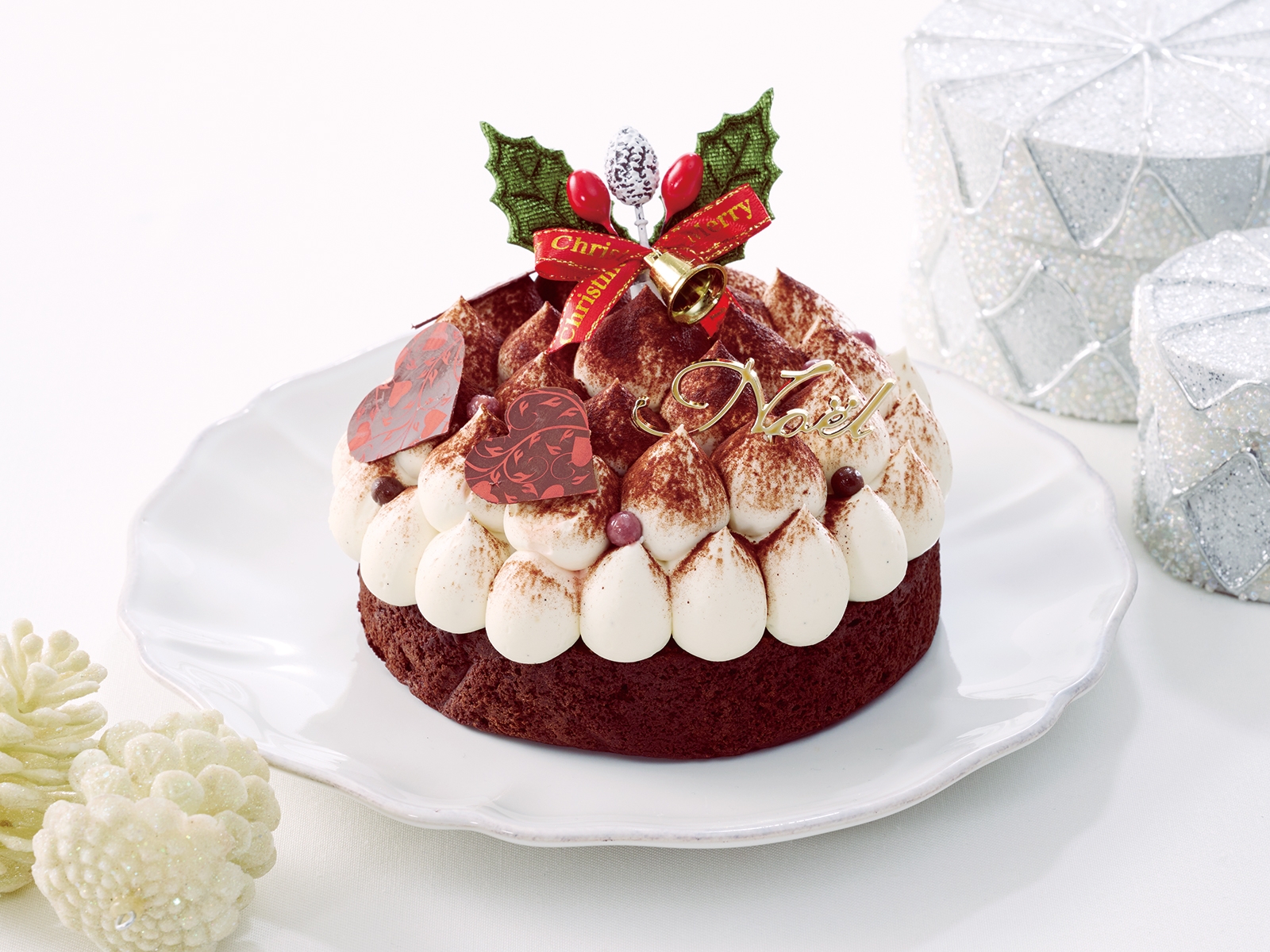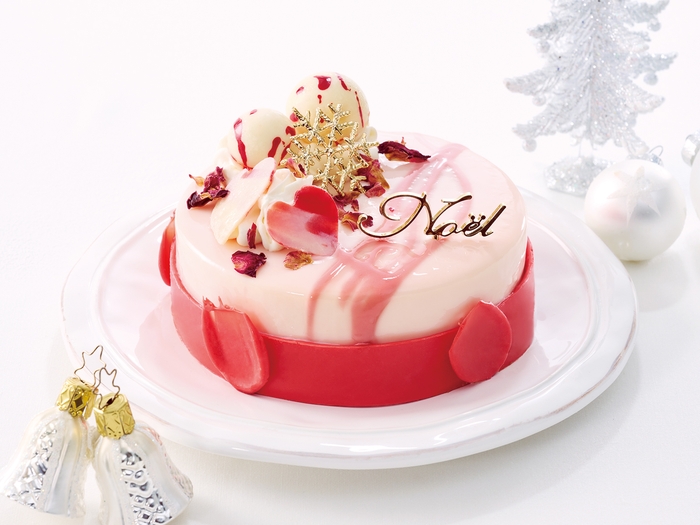 マダガスカル産バニラのまろやかな香りのバニラムースに、ハーバルな北海道産シナはちみつをアクセントにしたフランボワーズクリームとライチジュレを合わせた上品な味わいがクリスマスを盛り上げます。